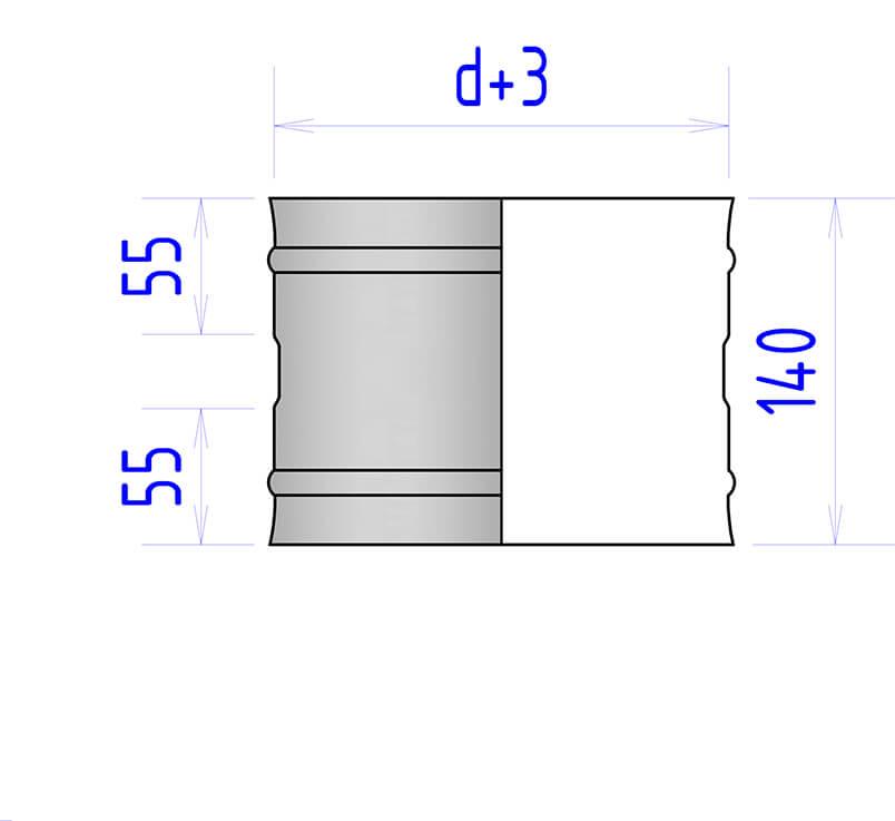 Гильза 1Г представляет собой короткий отрезок одноконтурной трубы с окончанием «мама-мама» или «папа-папа». Окончание «мама» достигается путем растяжения. Данный элемент в процессе сборки дымохода используется для перехода со схемы сборки «по дыму» на сборку «по конденсату» или наоборот.
