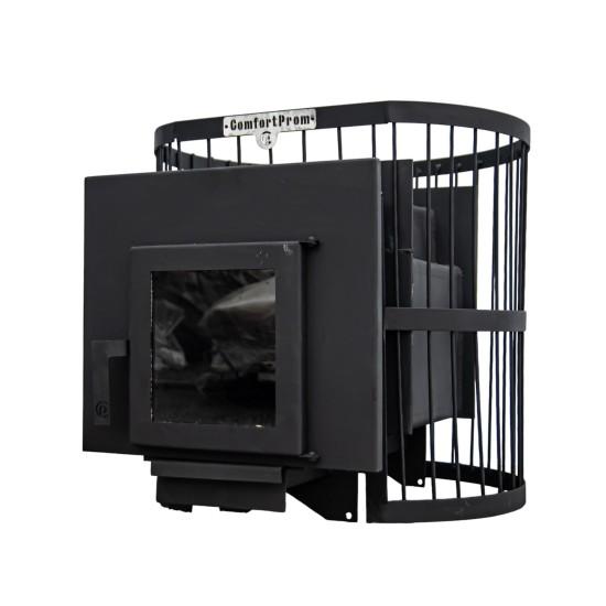 Печь банная ComfortProm СТАЛЬ 8 мм, для парной до 20 кубов, вес 89 кг, длина дров до 40 см, на 130 кг камней, дверь со стеклом